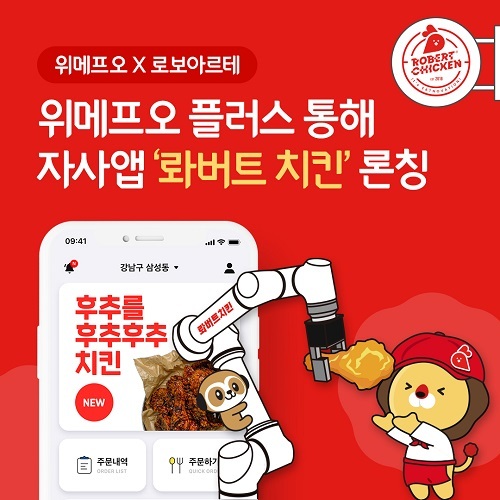 [세계비즈=황지혜 기자] 위메프오는 푸드테크 스타트업 로보아르테가 D2C(Direct to Customer) 플랫폼 솔루션 ‘위메프오 플러스’를 활용해 자사앱 ‘롸버트 치킨’을 출시한다고 21일 밝혔다.