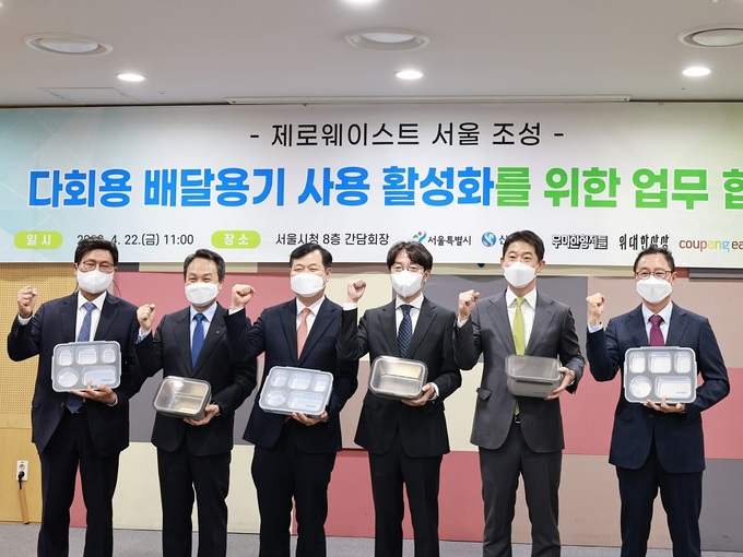 국내 대표 배달앱 요기요는 서울시, 3개 배달앱사(배달의민족·쿠팡이츠·땡겨요) 함께 ‘다회용 배달용기 사용 활성화’ 위한 업무협약을 체결했다고 22일 밝혔다.