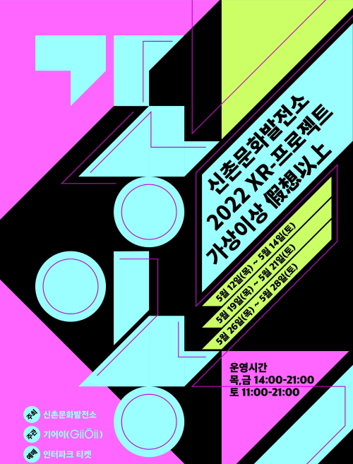 [세계비즈=황지혜 기자] 한국콘텐츠진흥원 CKL기업지원센터 입주기업 ‘기어이 주식회사(대표 이혜원)’는 오는 5월 12일부터 28일까지 매주 목, 금, 토요일 신촌문화발전소에서 ‘2022 XR 프로젝트: 가상이상(假想以上) 시즌2(이하 가상이상2)’를 개최한다고 27일 밝혔다.