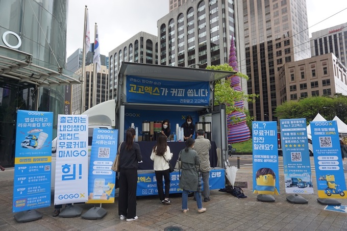 [세계비즈=황지혜 기자] 글로벌 물류 운송 플랫폼 고고엑스(GOGOX)가 오전 8시부터 오후 6시 반까지 광화문 청계광장 앞에서 본 행사에 방문하는 모든 사람을 대상으로 하룻동안 선착순 1000잔의 커피를 무료로 제공했다고 29일 밝혔다.