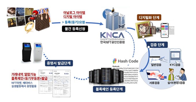 온라인 NFT 증명서 발급 시스템과 오프라인 NFT 무인 발급기 또한 개발해 특허를 취득함으로써 NFT가 다양한 자산 활동에 실질적으로 사용할 수 있게 됐다는 것이 KNCA 측의 설명이다.