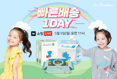 방송은 9일 오전 11시부터 1시간 동안 진행되며, 페넬로페 기저귀 및 아기 물티슈 등 베스트셀러를 최대 46% 할인가에 판매한다. 방송 중 구매 건에 한해 ‘당일 제품 발송’ 서비스도 제공한다.