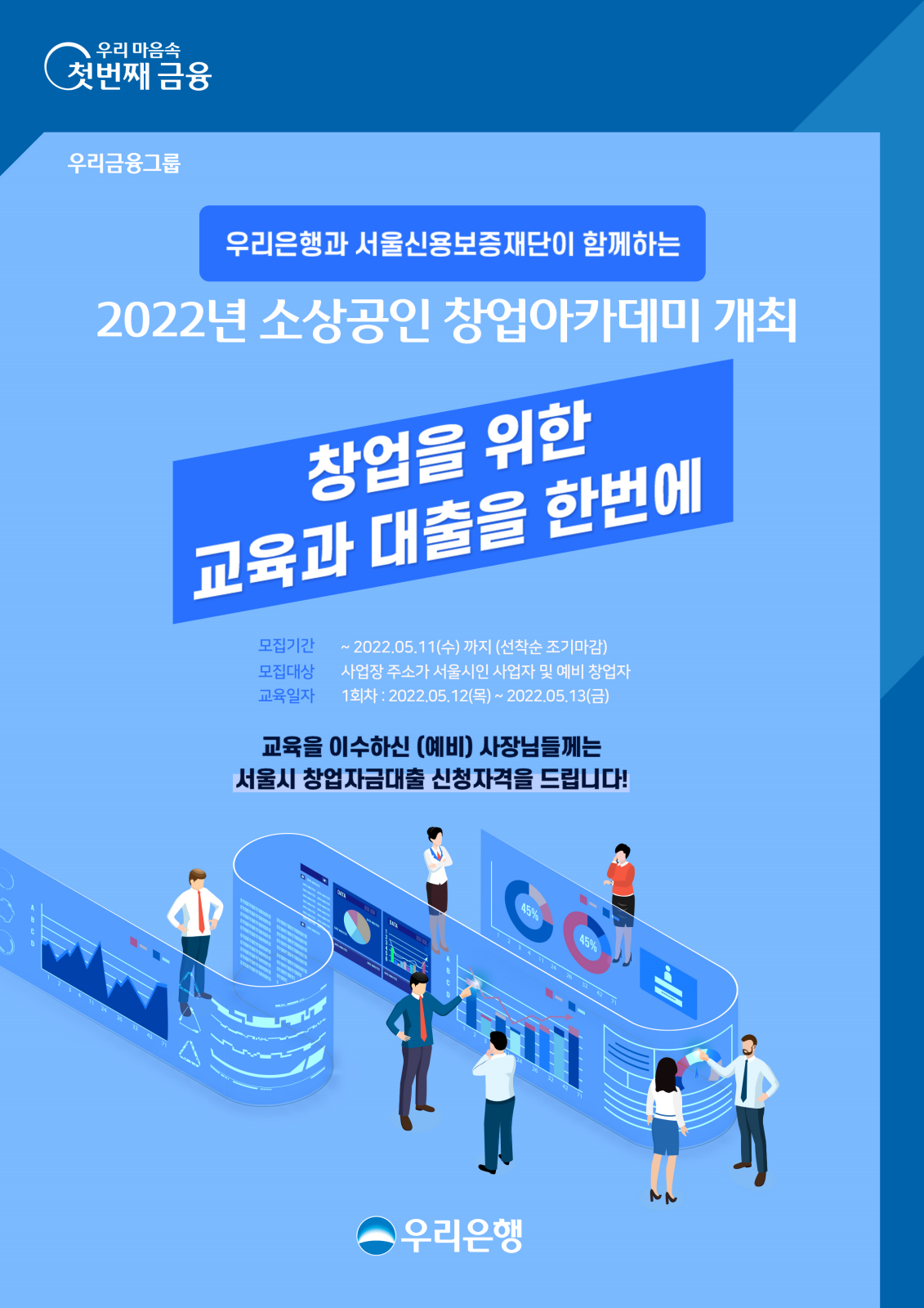 [세계비즈=오현승 기자] 우리은행은 오는 12일부터 이틀 간 본점에서 예비 창업자의 성공적인 창업을 위한 ‘우리은행과 서울신용보증재단이 함께하는 소상공인 창업아카데미’를 개최한다고 5일 밝혔다.