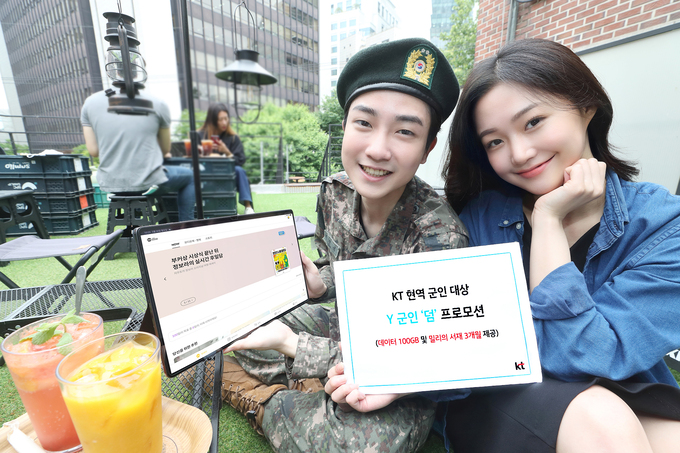 ‘Y 군인 덤’ 프로모션은 KT Y 군인 요금제 또는 Y 군인 혜택 가입자 대상으로 100GB 데이터와 밀리의 서재 3개월을 무료로 제공하는 행사다. KT Y의 20대 전용 앱(App.)인 ‘Y박스’을 통해 이 프로모션을 6월 한달간 신청할 수 있다.