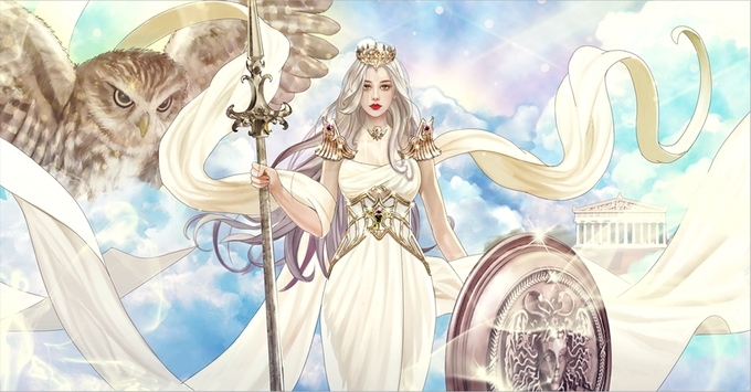 아테나 리턴즈는 전쟁과 지혜의 신이었던 아테나가 무력 전쟁이 없어진 현대에서 무력한 나날을 보내다가, 인터넷 세상의 악의 무리를 처단하고 인간을 보호해주며 본연의 모습인 전쟁과 지혜의 신으로 돌아간다는 세계관을 담고 있다.