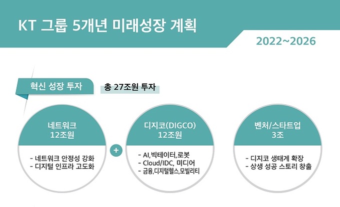 KT는 AI·빅데이터 기술과 국내 최대 콜센터 운영경험을 기반으로 AICC와 같은 신사업을 제시했으며, 기가지니 서비스 데이터를 결합한 로봇사업도 추진 중이다. 이들 주력 신사업에 1조5000억원을 투입해서 영상AI·CCaaS(Contact Center as a service)·초거대 AI 사업을 발굴하고 로봇플랫폼 사업 확대에 박차를 가한다는 구상이다.