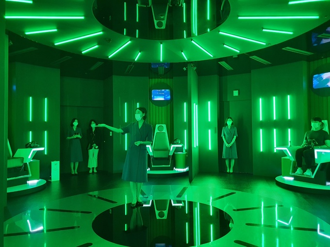첫 번째 도착지는 ‘우주관제센터’다. 이곳의 ‘캡틴’이 직접 우주환경 모니터링, 지구환경 모니터링, 지구 생태계 모니터링을 소개한다. 영화 ‘마이너리티 리포트’의 한 장면처럼 초대형 홀로그램을 허공에서 조종하는 캡틴의 모습이 인상적이다.