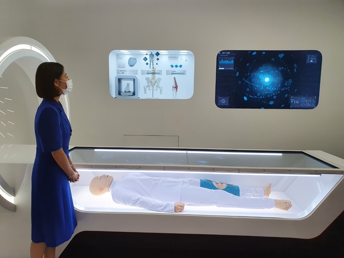 이어지는 ‘원격의료’ 공간에서는 AI를 활용한 개인의 생체정보 확인 및 맞춤 케어 모습이 연출된다. 햅틱 전송장치를 활용해 원격 수술을 체험하고, 3D프린팅 기술 등이 실제 어떻게 구현될 수 있는지 보여준다.