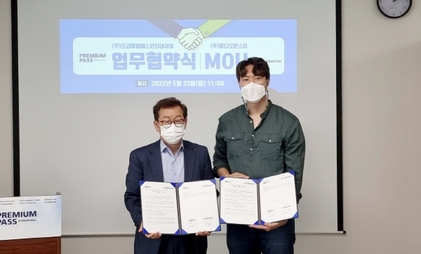 [세계비즈=박혜선 기자] ㈜비디오몬스터(대표이사 전동혁)가 ㈜프리미엄패스인터내셔널(대표이사 김응수)와 업무협약을 체결했다고 20일 밝혔다.