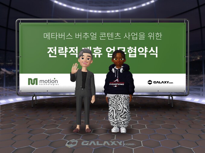 [세계비즈=박혜선 기자] 메타버스 아바타 기업 갤럭시코퍼레이션과 실감 콘텐츠 제작기업 모션테크놀로지가 메타버스 실감형 XR 콘텐츠 제작을 위한 업무협약(MOU)을 체결했다고 22일 밝혔다.