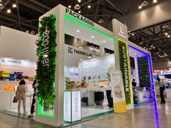 업체 측에 따르면 써모랩코리아는 라스트마일 배송시장에서 독보적인 친환경 패키징 기술력을 무기로 마켓컬리 및 쿠팡 등과 같은 대형 유통기업에 친환경 패키징 개발과 공급을 진행하고 있다. 이번 전시에서는 ▲콜드체인 물류 플랫폼(PaaS)과 스티로폼 박스를 대체할 수 있는 친환경 배송박스 ▲'에코라이너(eco·liner)'를 선보였다.