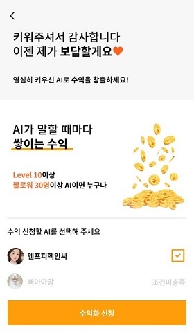 AI 대화 시 20회 발화 기준 1세잇이 적립되며, 1세잇 당 최대 27.5원을 현금화할 수 있다. 단, AI 레벨 및 프로모션 등에 따라 차등 지급될 수 있다.