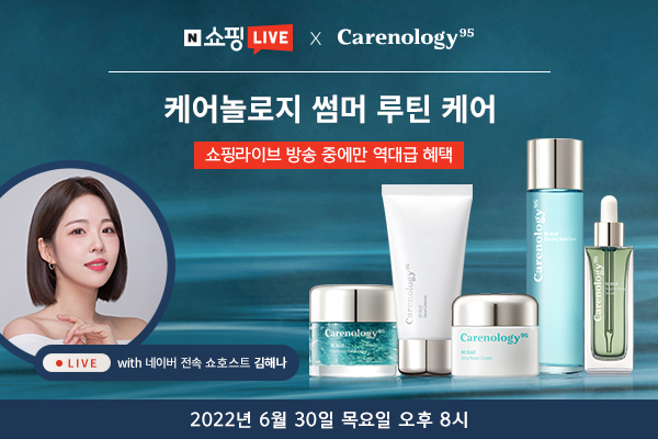 [세계비즈=박혜선 기자] 케어놀로지가 ‘케어놀로지 썸머 루틴 케어’의 주제로 오후 8시부터 9시까지 1시간 동안 네이버 쇼핑 라이브 방송을 진행한다고 30일 밝혔다.