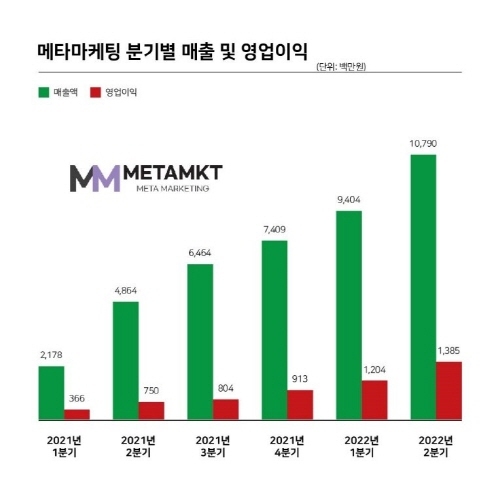 한편 메타마케팅은 올 상반기 초록뱀헬스케어로부터 1100억 원의 기업가치로 437억 원의 투자를 유치한 바 있다. 지난해 회사는 매출 209억 원, 영업이익 28억 원을 각각 기록했다고 업체 측은 전했다.