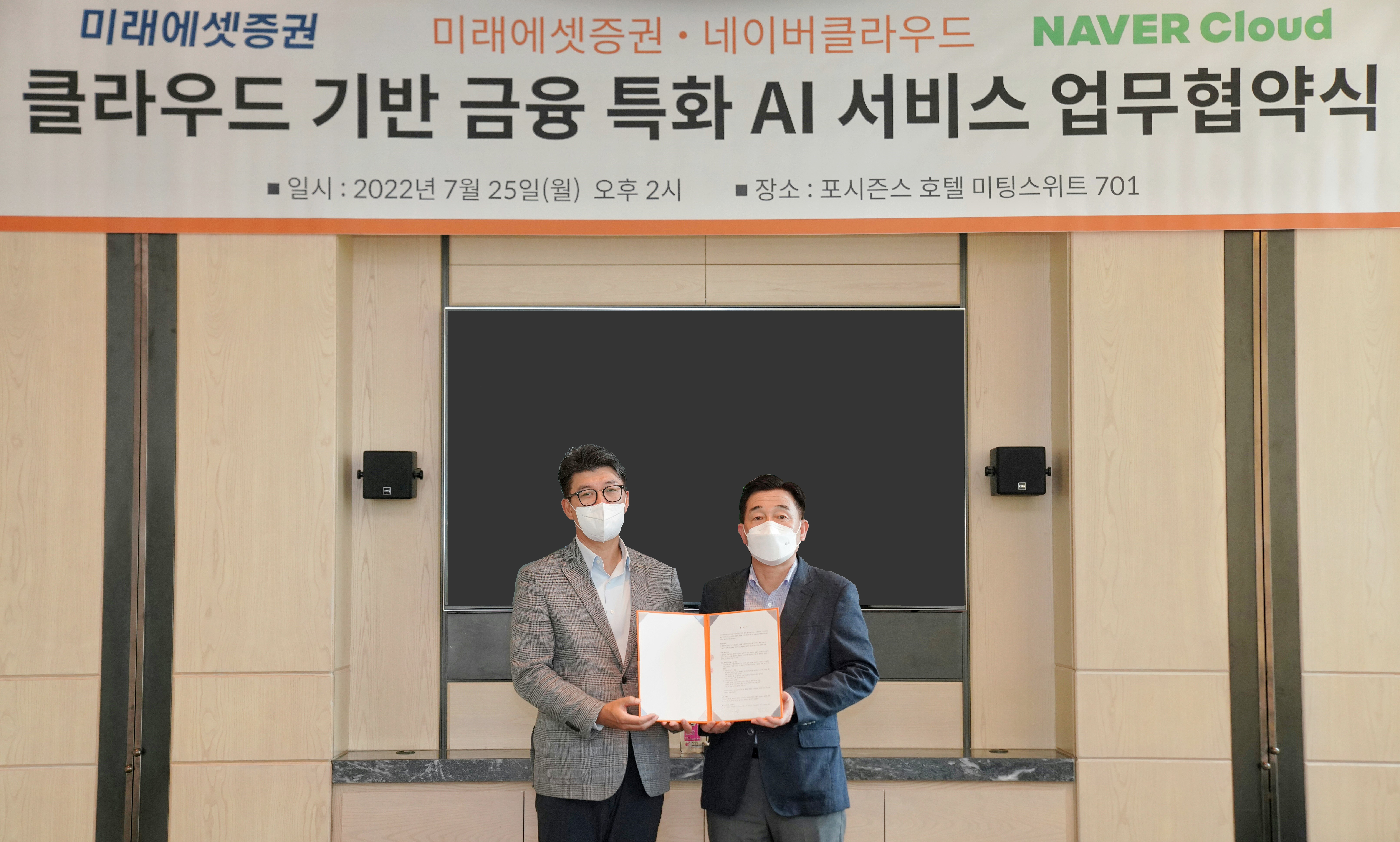 미래에셋증권은 2018년 네이버클라우드 고성능 컴퓨팅(HPC) 도입을 시작으로 클라우드 기반 금융 IT 혁신을 지속하고 있다. 긴밀한 협력의 일환으로 양사는 ‘클라우드 기반 금융 특화AI 서비스 업무협약’ 체결을 통해 오픈 이노베이션 확대에 나설 계획이다.