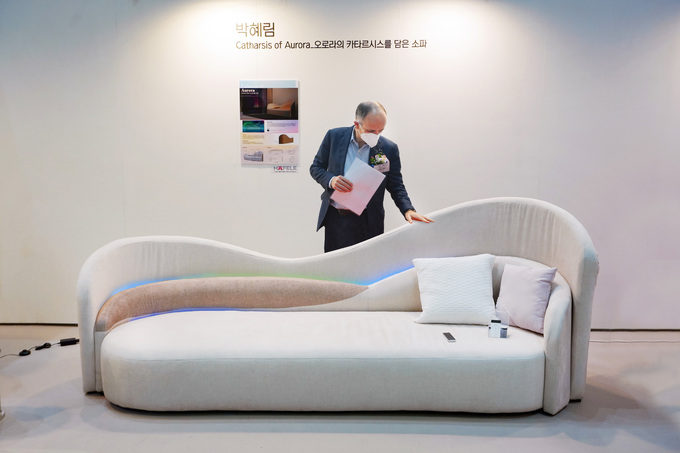 헤펠레상을 수상한 협성대학교 박혜림 학생의 ‘Catharsis of Aurora_오로라의 카타르시스를 담은 소파’는 헤펠레 룩스를 소파에 접목해 사용자에게 편안함과 밤하늘 오로라의 감동을 선사한다. 헤펠레 Mesh(메쉬) 디바이스를 사용해 핸드폰으로 조명을 다양하게 컨트롤 할 수 있으며 조명 색상을 바꾸는 것부터 광도와 광원 등을 설정해 오로라의 다양한 색감을 세팅할 수 있다.