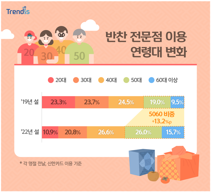 특히 예전에는 마트나 시장에서 재료를 구입해 직접 차례 음식 등을 만드는 연령대였던 50대 이상의 비율이 2019년 28.5%에서 올해 41.7%로 늘어난 것이 눈에 띈다.