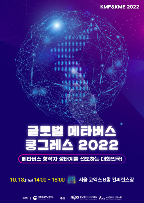 한편 온-오프라인으로 진행되는 ‘글로벌 메타버스 콩그레스 2022’는 KMF & KME 홈페이지를 통해 무료로 사전등록을 할 수 있다. 한-아세안 ICT 융합빌리지(ASEAN-Rok ICT Covergence Village) 채널을 통해서도 실시간 시청 및 질의응답이 가능하다.