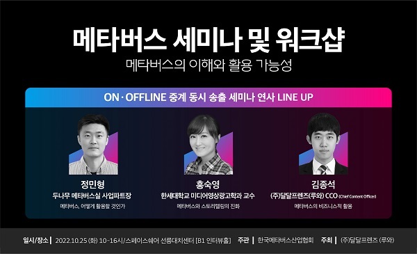 달달프렌즈(루와) 김종석CCO는 “참석하는 분들이 메타버스와 관련된 최신 트렌드는 물론 여러 유익한 정보를 얻어가는 의미 있는 자리가 될 것”이라고 밝혔다.