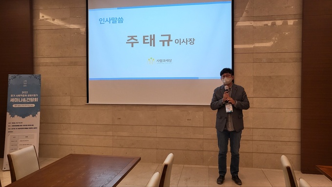 [세계비즈=황지혜 기자] 사회적기업가 육성사업 창업지원기관 사회적협동조합 사람과세상이 지난 12일 ‘2022 경기 사회적경제 창업지원가 세미나&간담회’를 서머셋센트럴분당 아이리스홀에서 개최했다고 13일 밝혔다.