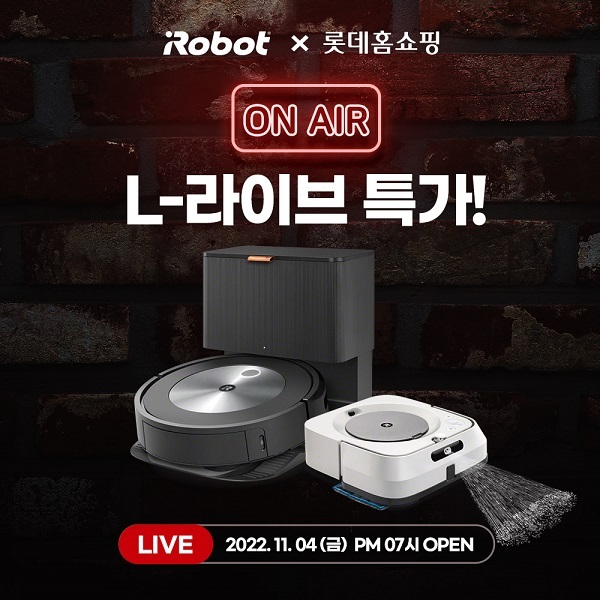 [세계비즈=황지혜 기자] 청소가전 전문기업 아이로봇은 오는 4일 오후 7시 롯데홈쇼핑 라이브커머스 ‘엘라이브’를 통해 자사 로봇청소기 4종을 최대 42% 할인 판매한다고 1일 밝혔다.