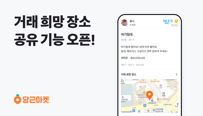 16일 지역생활 커뮤니티 당근마켓에 따르면 이용자들의 편리한 거래 환경 조성을 위해 ‘거래 희망 장소 공유 기능’을 선보인다고 밝혔다.