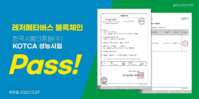 [세계비즈=황지혜 기자] NFT 마켓플레이스 2.0 플레이놈(대표이사 문성억)은 레저메타버스 프로젝트가 자체 개발한 메인넷인 레저메타버스 블록체인이 한국시험인증원(KOTCA) 테스트에서 평균 초당 거래량 1262.113 TPS(Transaction Per Second)의 성능을 인증받았다고 28일 밝혔다.