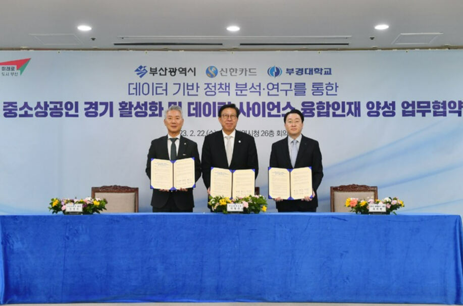 신한카드는 부산광역시, 부경대학교와 ‘데이터 기반 정책 분석·연구를 통한 중소상공인 경기 활성화 및 데이터 사이언스 융합 인재 양성’을 위한 협약을 체결했다고 22일 밝혔다.
