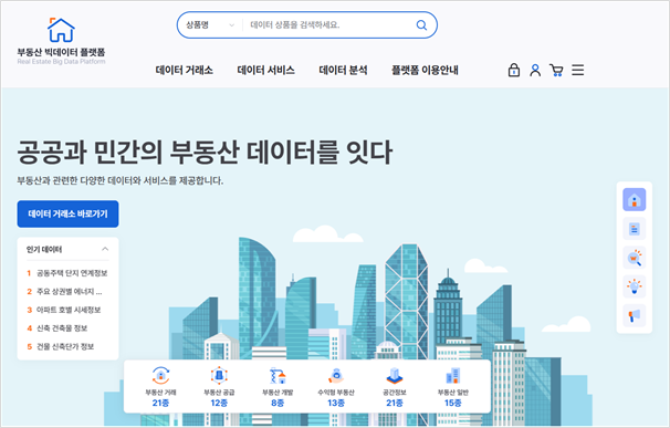 부동산 빅데이터 플랫폼 구축은 과학기술정보통신부와 한국지능정보사회진흥원이 주관하는 사업으로, 국민과 기업이 활용할 수 있는 양질의 부동산 데이터를 개방하는 것이 목적이다.