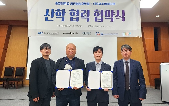 유주얼미디어는 지난 25일 중앙대학교 아트센터에서 중앙대학교 첨단영상대학원(GSAIM)과 OTT콘텐츠 IP개발 및 상용화를 위한 상호 협력 업무협약(가족회사 협약)을 체결했다고 27일 밝혔다.