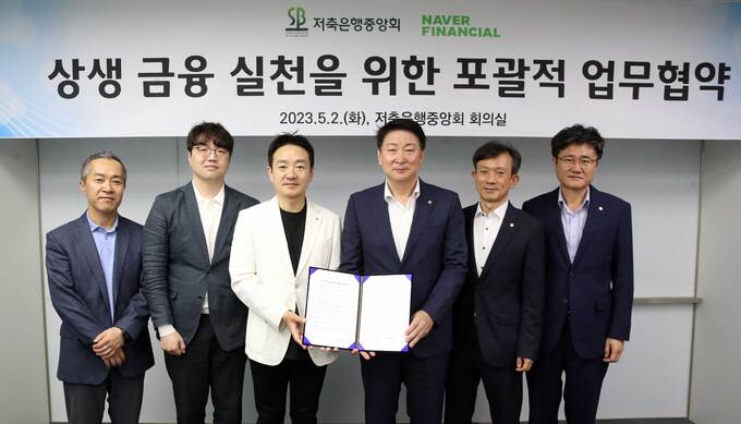 저축은행중앙회는 최근 기준금리 급등에 따른 금융소비자의 이자부담을 완화하기 위해 네이버파이낸셜과 상생금융 실천을 위한 포괄적 업무제휴 협약식을 가졌다고 2일 밝혔다.