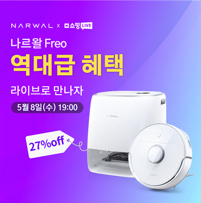 로봇청소기 ‘나르왈 프레오’가 오는 8일 네이버 쇼핑 라이브를 통해 라이브 커머스 방송을 진행한다고 7일 밝혔다.