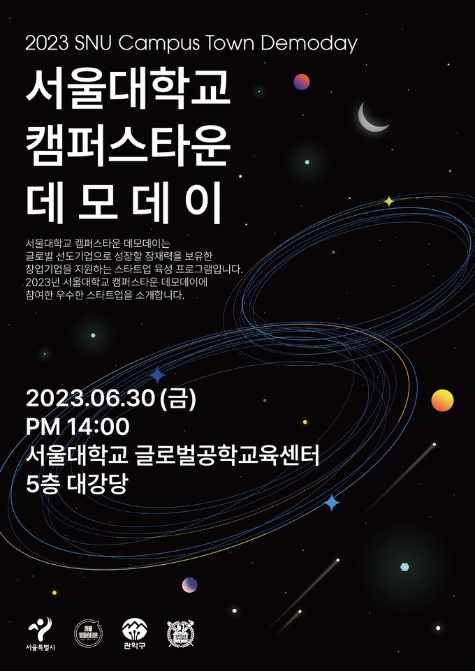 서울대학교 캠퍼스타운 사업단은 입주 및 졸업기업의 투자 유치와 사업 연계를 돕기 위한 ‘2023 서울대학교 캠퍼스타운 데모데이’를 오는 30일 개최한다고 12일 밝혔다.