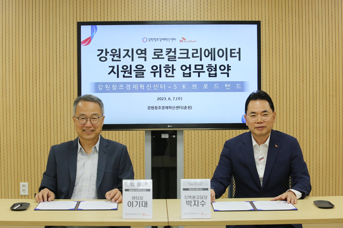 SK브로드밴드는 최근 강원도 춘천시 강원창조경제혁신센터 본원에서 ‘강원지역 로컬 크리에이터 지원을 위한 업무협약’을 체결했다고 밝혔다. 로컬 크리에이터는 로컬(Local)과 콘텐츠 제작자(Creator)의 합성어로, 지역 문화·관광·자원 등을 기반으로 비즈니스 모델을 접목해 지역 문제를 해결·혁신하고 가치를 만들어내는 창업가를 말한다.