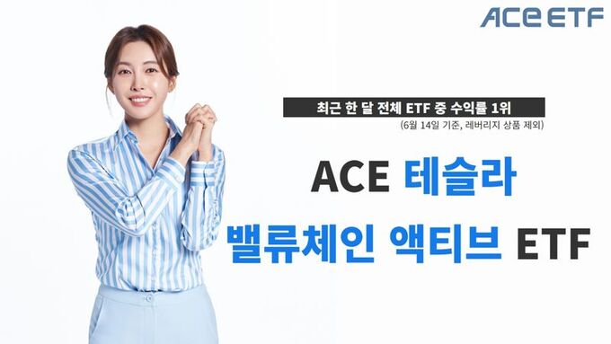 15일 한국투자신탁운용은 ACE 테슬라밸류체인액티브 ETF가 최근 한 달 29.09%의 수익률을 기록했다고 밝혔다. 레버리지를 제외한 국내 ETF 중 1위다.