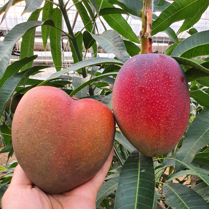 이 농장에서 생산된 애플망고는 특유의 선명한 컬러와 함께 애플망고의 끝 부분에서는 상쾌함을 더하는 진한 솔잎향이 느껴지며 크기와 높은 당도(17~20브릭스) 또한 특징이라는 것이 업체 측의 설명이다.