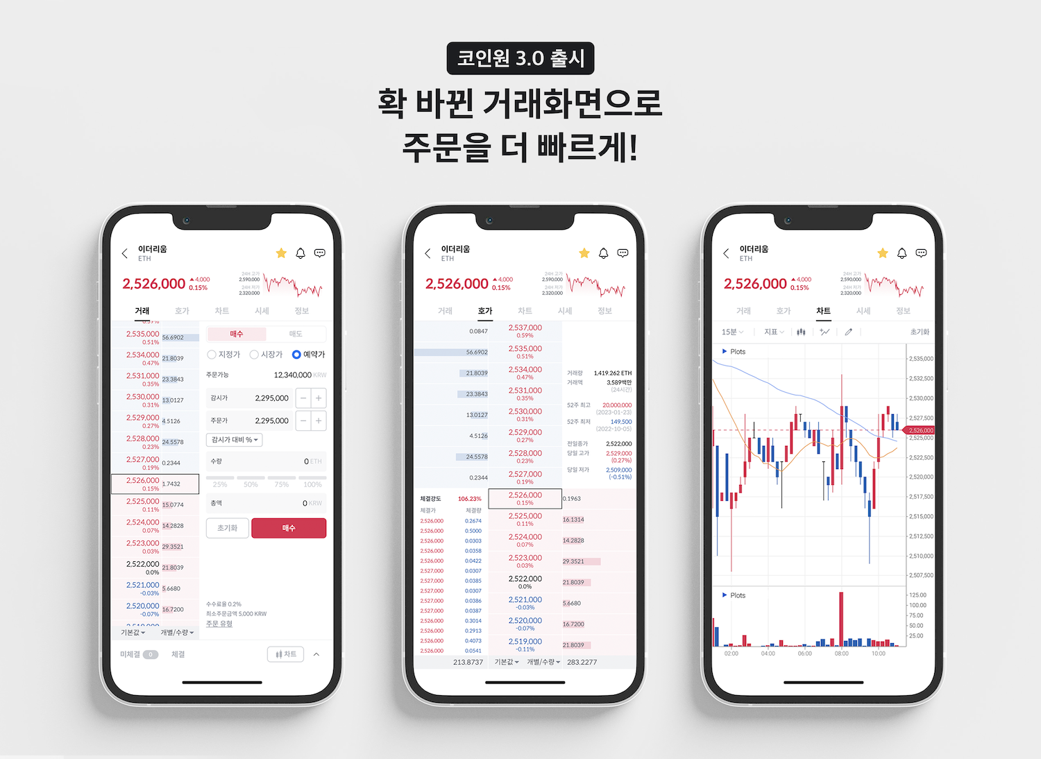 블록체인 서비스는 어렵고 복잡하다는 투자자들의 인식 변화를 위해 제품과 서비스의 편의성도 개선하고 있다. 고객들이 보다 간편하게 블록체인 투자 경험을 늘릴 수 있도록 지원하기 위해서다. 코인원은 최근 자사 웹과 앱의 거래 편의성을 높인 ‘코인원 3.0 업데이트’를 선보였다. 기존 지정가 주문에 더해 시장가와 예약가 두 가지 신규 주문 방식을 추가했다. 또한 코인원 앱의 거래화면 인터페이스도 개선했다. 거래화면을 거래, 호가, 차트, 시세, 정보 등 5가지 탭으로 구분하고 영역별 편의성 높은 기능을 추가했다.