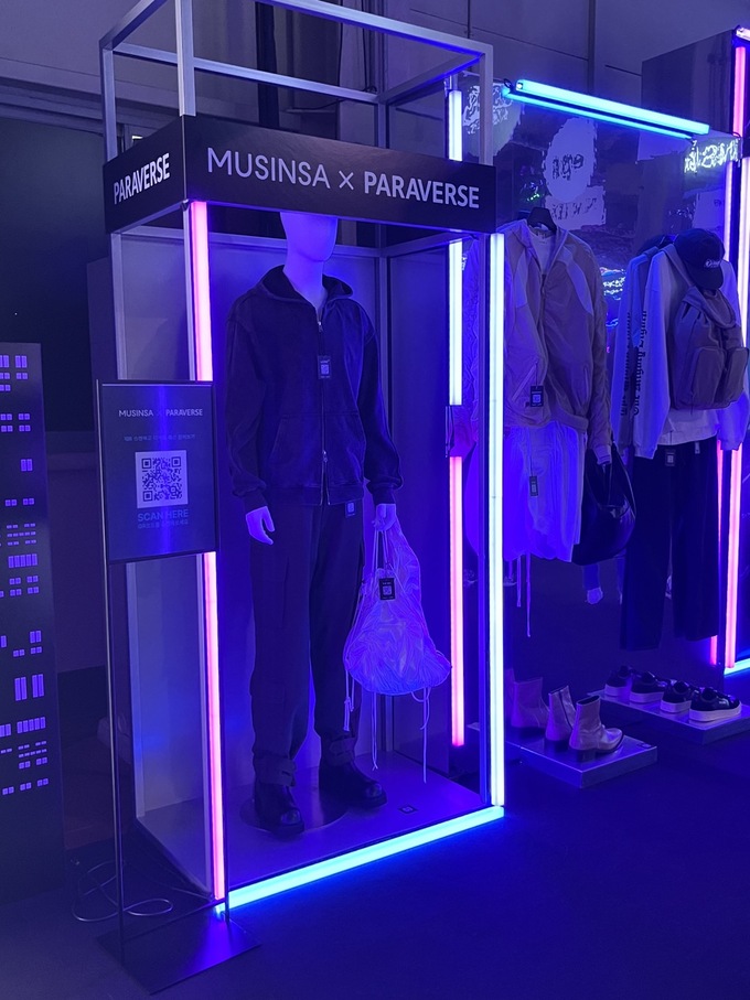 이매지니어스의 AR 서비스인 파라버스(PARAVERSE)의 이름으로 꾸며진 ‘무신사X파라버스’ 체험 공간에서는 무신사의 실물 의류와 함께 전시된 QR 코드를 스캔하면 비현실적인 디지털 AR 패션 콘텐츠가 나타나는 형태의 체험이 가능했다.