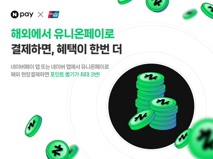또 네이버플러스 멤버십, 네이버페이 머니 하나 통장을 사용하는 경우 현장결제로 뽑은 포인트의 2배·4배를 적립해주는 혜택도 제공된다. 지난 9월부터 올 12월 31일까지 해외 유니온페이 가맹점에서 2천원 이상 첫 결제 시 2천원 페이백 이벤트도 함께 진행된다.
