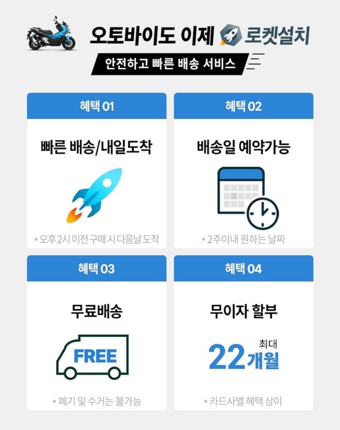 오토바이도 로켓배송으로 받아볼 수 있는 서비스가 등장했다.