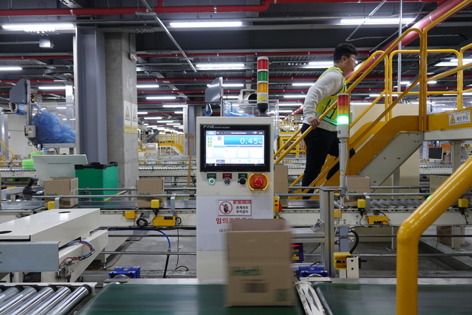 중량 검수에서 ‘정상’ 처리가 되면 3D 스캐너가 박스 내 빈 공간을 측정하고 최적량의 완충재를 자동으로 넣는다. 박스 테이핑, 송장 부착 작업도 모두 자동으로 이뤄진다. 이후 ‘휠소터(Wheel-Sorter)’가 국가별로 분류하면 작업자들이 간선차량에 박스를 싣는다. 작업이 마무리되면 간선차량들은 인천공항으로 이동해 각 국가별 노선에 맞춰 발송된다.
