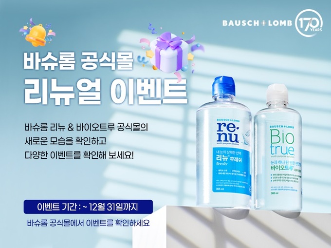 한편 바슈롬코리아는 공식 스마트스토어의 리뉴얼 오픈을 기념하며 다양한 기획전과 프로모션을 준비했다. 쇼핑스토리 ‘알림받기’ 설정 시 최대 1000원 쿠폰 증정하고 제품 구매 후 리뷰 작성 시 스타벅스 아메리카노 쿠폰과 바이오트루 120ml 2개 증정하는 이벤트를 12월 말일까지 진행한다.