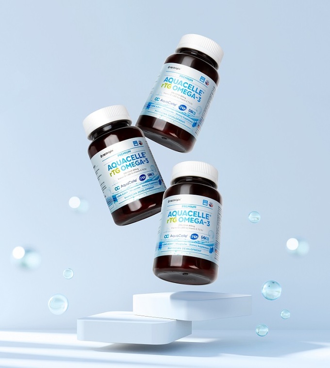 업체에 따르면 ‘프리미엄 아쿠아셀 rTG 오메가-3’는 지방산 분자 1mm를 잘게 쪼개 체내 흡수율을 높인 아쿠아셀 공법 적용한 오메가-3 제품이다. 또한 1캡슐에 EPA + DHA 함유 유지 800mg이 함유되어 있고 순도 약 90%의 제품이다.