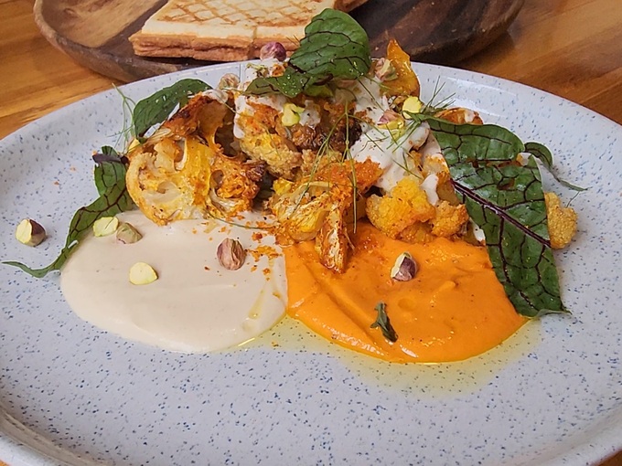 “구운 콜리플라워에 피스타치오와 허브 크러스트로 만든 크럼블을 올려 고소한 풍미를 강조했다. 피스타치오를 곁들인 바질 크림 소스에 원통형 숏파스타를 더한 ‘피스타치오 크림 리가토니’도 풍성하고 부드러운 맛을 자랑한다.