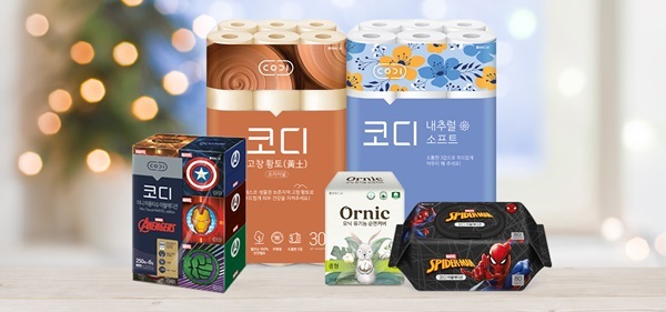 이와 함께 마블의 슈퍼 히어로 캐릭터를 디자인에 접목한 코디 마블에디션 제품을 ‘1+1’ 한정수량 이벤트로 선보인다. ‘코디 미니 미용티슈 마블에디션’(250매, 6입)은 일반 미용티슈의 절반 사이즈로 간편하고 실용적이며 아이언맨, 캡틴아메리카, 헐크 등 각기 다른 캐릭터를 적용한 6가지 디자인으로 골라 쓰는 재미를 더하고 있다. 또한, ‘코디 물티슈 마블에디션’(80매, 캡)은 스파이더맨 캐릭터를 활용한 생동감 넘치는 디자인으로 재미를 선사하고 시어버터 추출물을 함유해 피부 보습에 도움을 주는 제품이다.