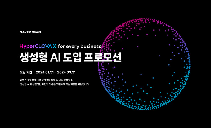 생성형 AI 도입 프로모션은 오는 3월 31일까지 신청 가능하며 프로모션에 관한 자세한 내용은 네이버클라우드 홈페이지에서 확인할 수 있다.
