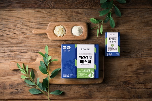 프롬바이오의 ‘위건강엔 매스틱’은 매스틱 검을 주원료로 함유한 위 건강기능식품이다. 매스틱 검은 프롬바이오가 위 불편감 개선에 도움을 줄 수 있음의 기능성과 안전성을 입증해 국내 식품의약품안전처로부터 개별 인정형 원료로 인정받았다.
