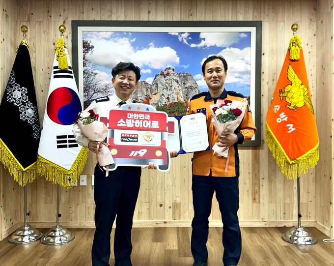 타이어 유통 전문기업 타이어뱅크(회장 김정규)가 한국노총 소속 전국소방안전공무원 노동조합과 함께 선정하는 소방히어로 18번째 주인공을 선정했다. 18번째 소방히어로는 경북 청송소방서의 송교탁 소방위다. 지난 23일 근무지인 청송소방서 청송119안전센터를 찾아 감사장과 타이어 교환권을 전달했다.