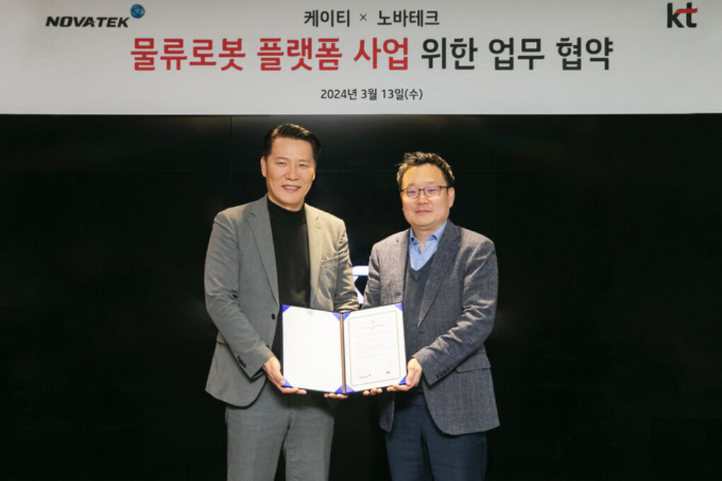 KT는 노바테크와 물류로봇 플랫폼 공동개발과 사업화를 추진하기 위한 업무협약(MOU)를 체결했다고 13일 밝혔다.