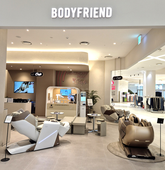 로봇이 내려주는 커피를 마시고 마사지까지 받을 수 있는 카페 형식의 바디프랜드 매장이 새롭게 문을 열었다.